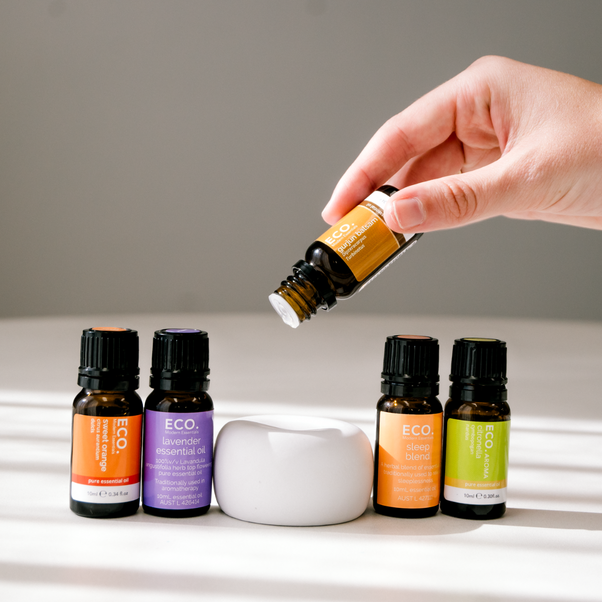 Are these essential oils safe for children? Keep all essential oils out of children’s reach at all times. Essential oils are generally too strong for babies under 24 months and may overwhelm their developing systems. When diffusing, use fewer drops than you would for adults (around 2-3 drops). Explore our ECO. Little Range for child-friendly blends and read more in our FAQs about aromatherapy for babies and children.